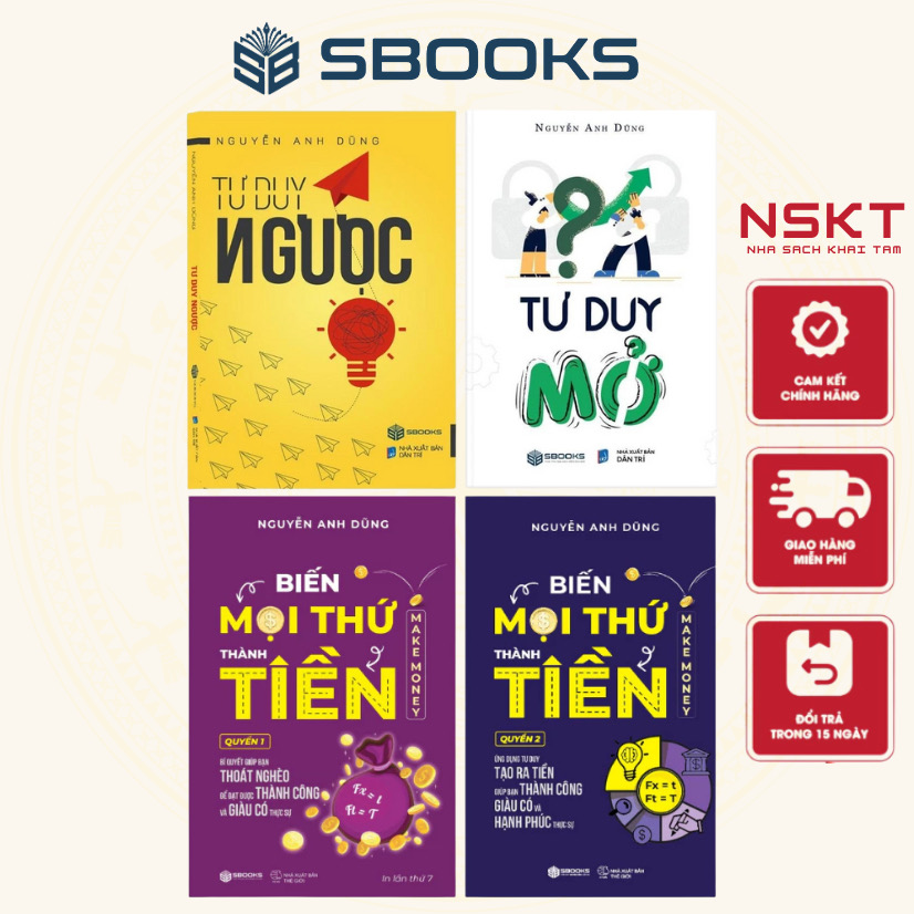 Bộ combo 4 cuốn “Tư Duy Ngược – Tư Duy Mở – Biến Mọi Thứ Thành Tiền (quyển 1 & 2)” của tác giả Nguyễn Anh Dũng chính là “chìa khóa vàng” giúp bạn mở cánh cửa tư duy mới.