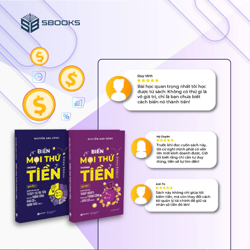 - “Biến mọi thứ thành tiền 1 & 2” dạy bạn cách khai thác giá trị từ chính bản thân, từ ý tưởng nhỏ đến thành công lớn.