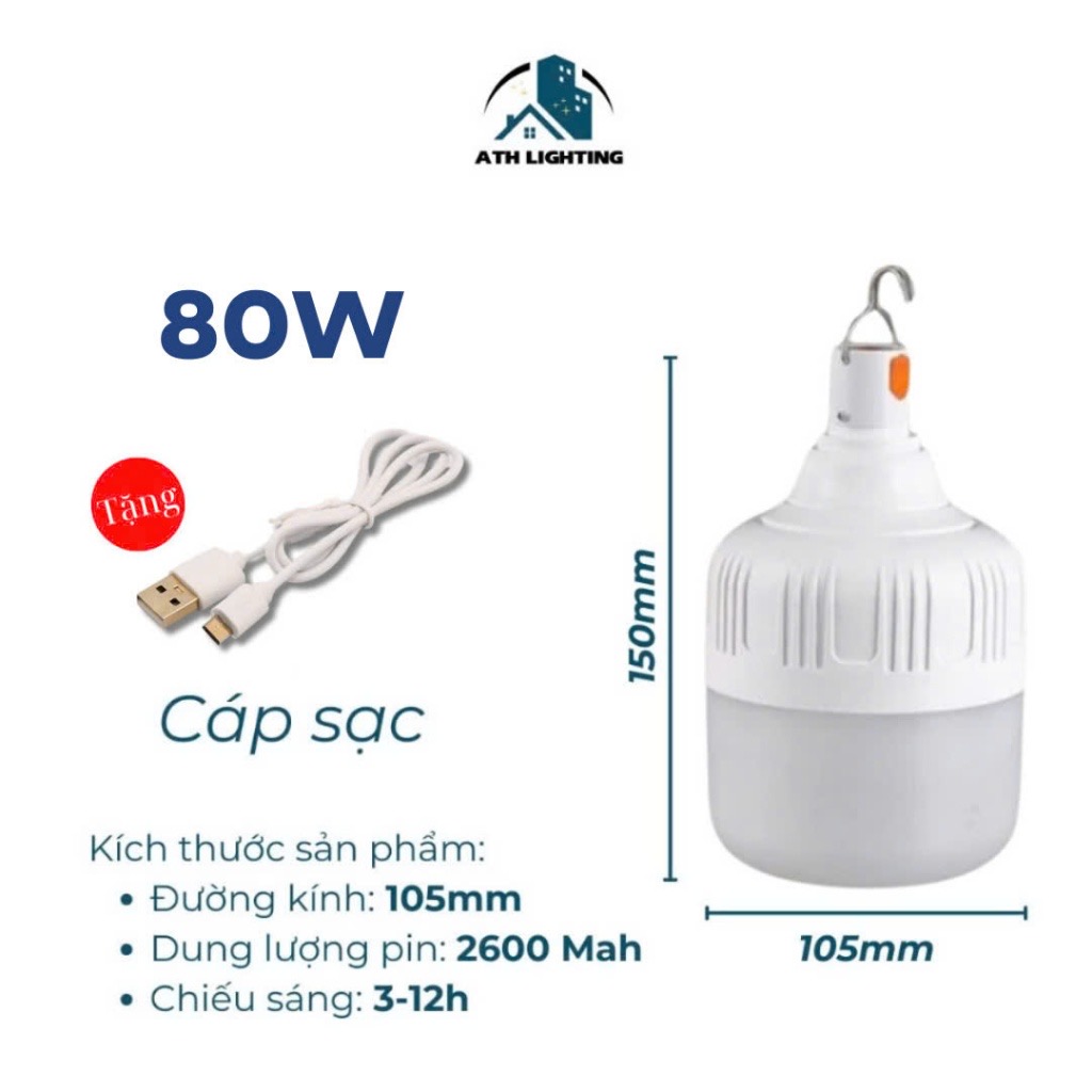 Đèn Tích Điện ATH LIGHTING 3 Chế Độ Sáng Siêu Tiết Kiệm Điện Nhỏ Gọn Tiện Lợi Dễ Dàng Mang Theo Cắm Trại, Dã Ngoại