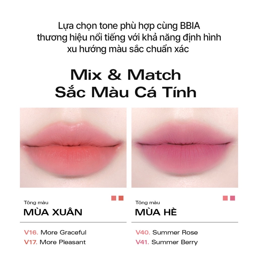 [MUA 1 TẶNG 1] Son kem nhung thuần chay, nhẹ môi BBIA Last Velvet Tint Re-new Version 5g